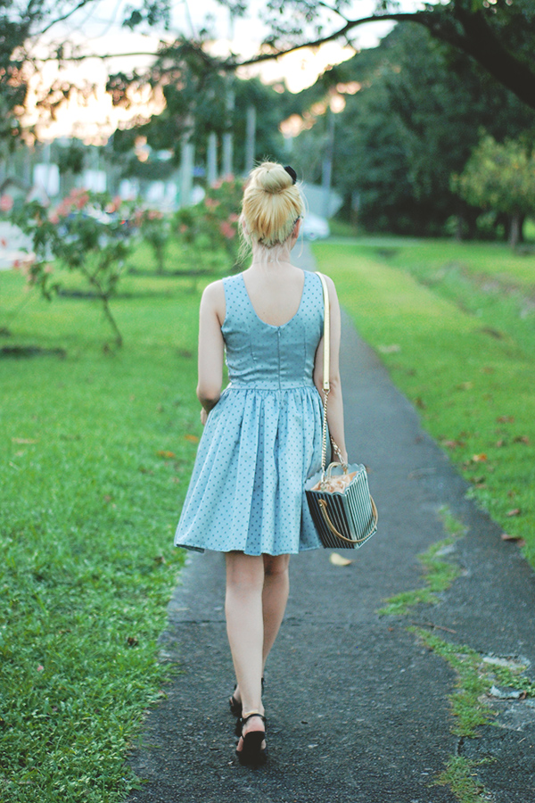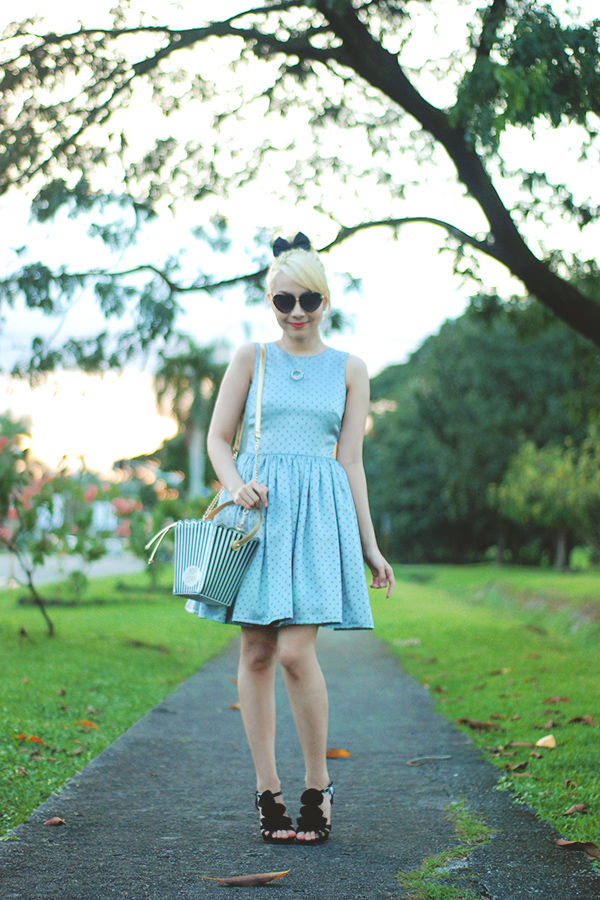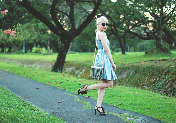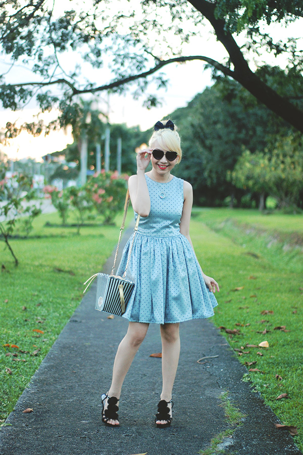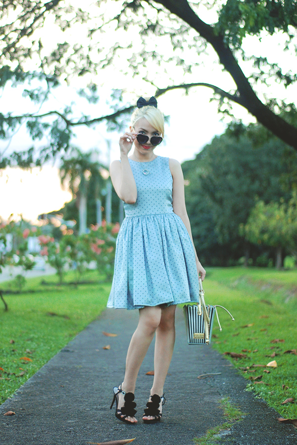 all this to say: my outfit above is inspired by her. she hasn’t done a similar look in weeks but it’s one of my favorite “themes” that she goes for. the polka dots, black accessories and updo are loosely based on this post of hers from last year and i am certain more than a handful other outfits on my blog have been inspired by her somehow. if anyone ever wants to create what-would-blair-wear arm bands i’m totally getting on that.