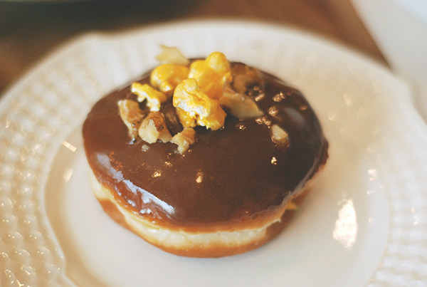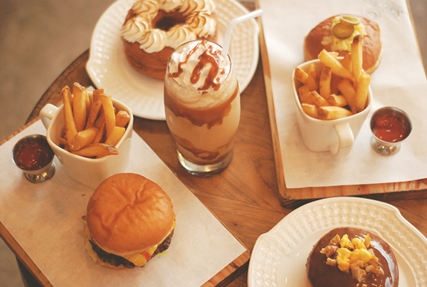 on the table: lemon meringue doughnut, caramel macchiato, cheeseburger, caramel popcorn doughnut and cheddar jalapeño doughnut sandwich (i remember this to be my favorite from the bunch!).