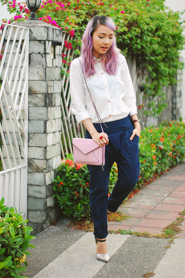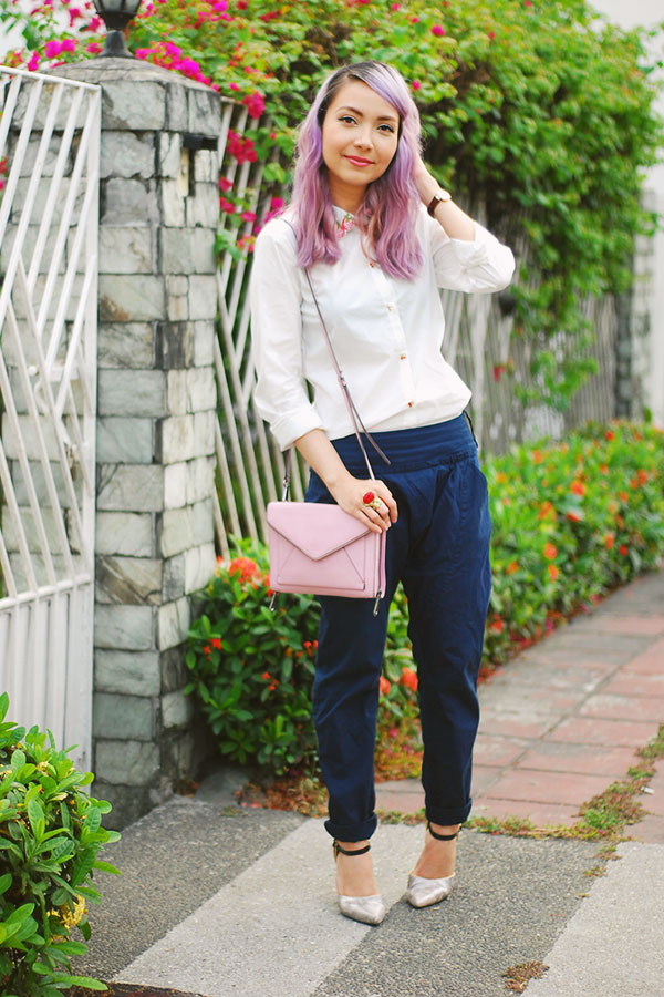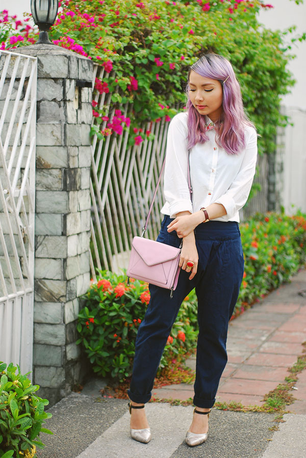 i used to dress in outfits like this all the time; it comes with working a 9-5 job, i guess. but since i haven’t had a desk job in years, nor have i attended too many meetings and events that require such a dress code, there hasn’t been much reason to dress up in any smart-casual kind of look. surprisingly enough i’ve come to find that i miss it quite a bit! i think it’s the whole grown-up aspect of it that appeals to me: wearing a crisp, button-down shirt with dressy trousers and heels seems to have that effect.