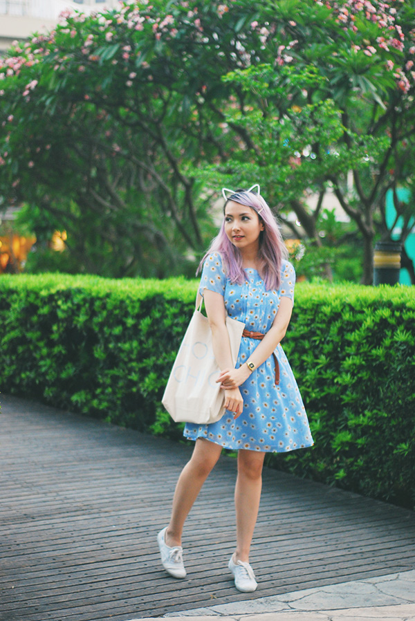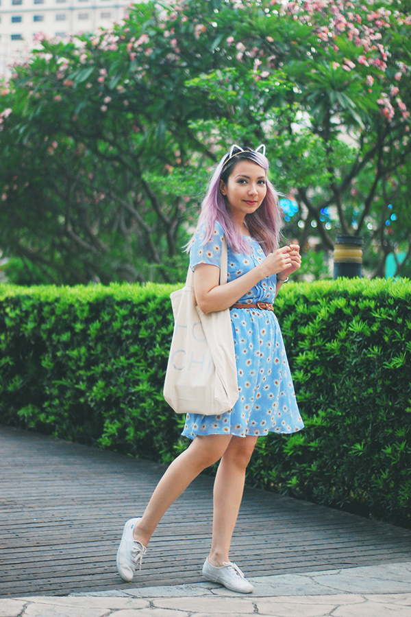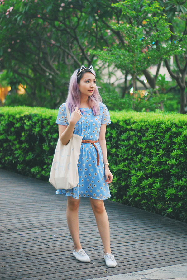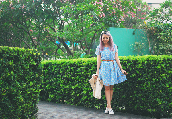 sakura season has got me feeling extra giddy (read: envious) this year, what with all the pretty pink blooms popping up in everyone’s photos on blogs and social media. i have yet to experience the beauty of cherry blossoms for myself but i hope i get to, soon! i found these trees with lovely pink flowers while walking around with john and thought they made for great substitutes, in the meantime..