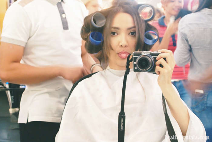 my hair was blow-dried and styled with giant rollers (not gonna lie, i quite enjoyed them!)…