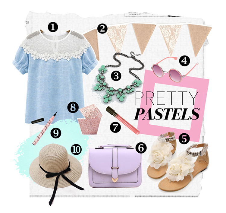 in the meantime, i invite you to take a gander at all the lovely items i found on dresslink. pastel will never get old for me and it’s always exciting when i discover inexpensive items in these soft, beautiful hues. my favorites above are the blouse, bag and sandals–but of course i want them all! i can already picture my room adorned with that pretty lace-trimmed bunting…