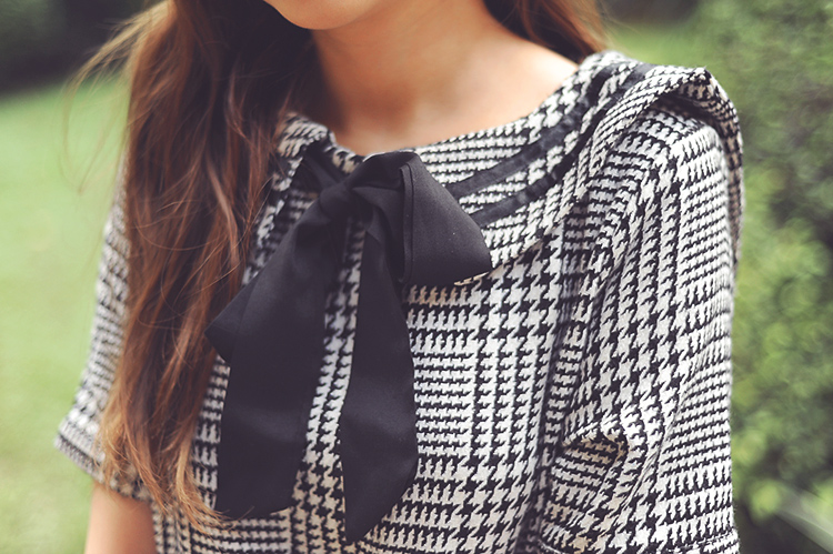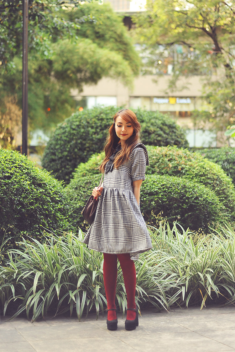 one of my most-loved prints of all time is the classic black-and-white houndstooth. a design that is both timeless and quirky, i find that its biggest appeal lies with the way it balances well with a variety of colors, patterns and outfit styles. i mean, i suppose i could say that about every other print under the sun, but i sure can’t resist a good houndstooth print. this dress was a semi-recent addition to my wardrobe and i love it so much. actually it had been sitting in a box for months and months, but i had to wait for cooler temperatures to be able to wear it (ah, the perks of persistent tropical weather). it’s made of quite a thick fabric, so i have a feeling it will go right back to hiding in my closet until summer passes and the rainy season starts. i think next time i will pair it with some cute little boots — it could work nicely, no? normally, a clothing item like this that is too ‘seasonal’ ends up being given away after just one or two uses, but this thing of beauty is worth the extra bit of trouble.