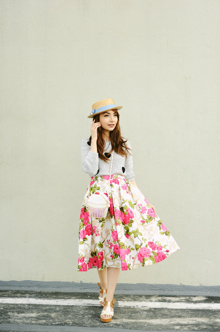 1bestiekonisis-floral midi skirt2bestiekonisis-floral skirt3bestiekonisis-mix print outfit4bestiekonisis-cupcake bag5bestiekonisis-boater hat outfit6bestiekonisis-midi skirt outfit7bestiekonisis-boater hat style