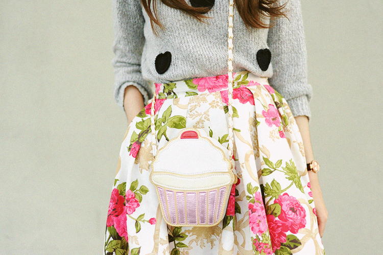 outfit details: dorothy perkins sweater | custom skirt | sammydress cupcake bag | MDb wedges