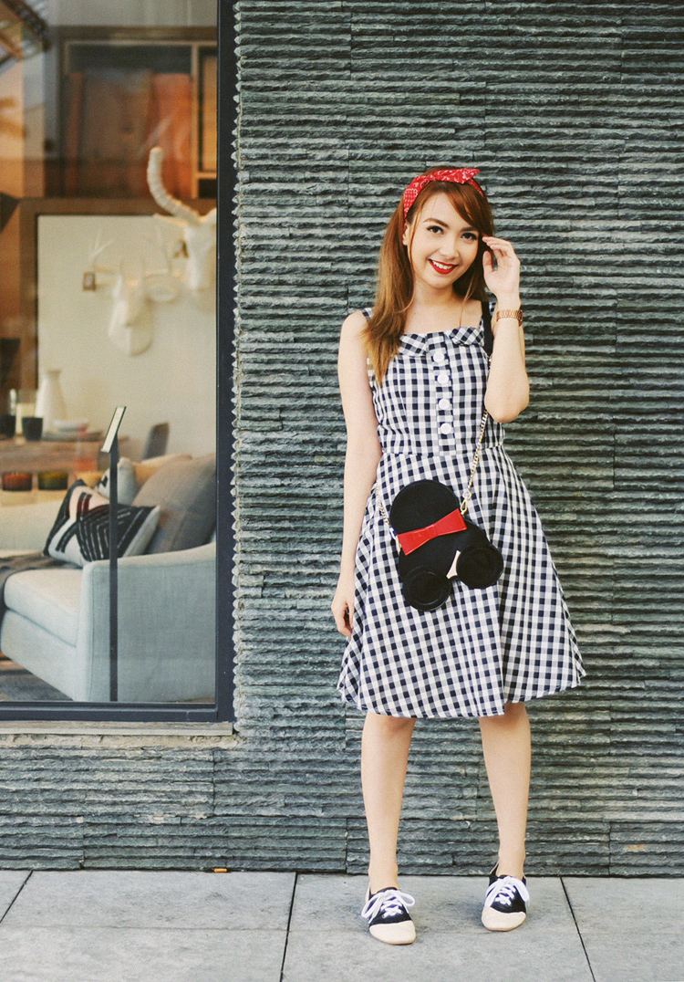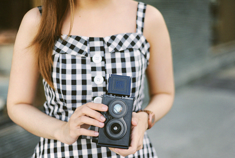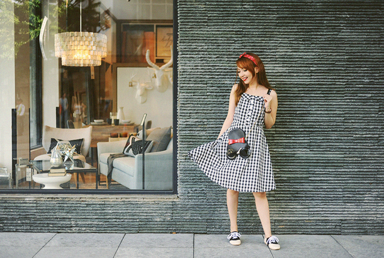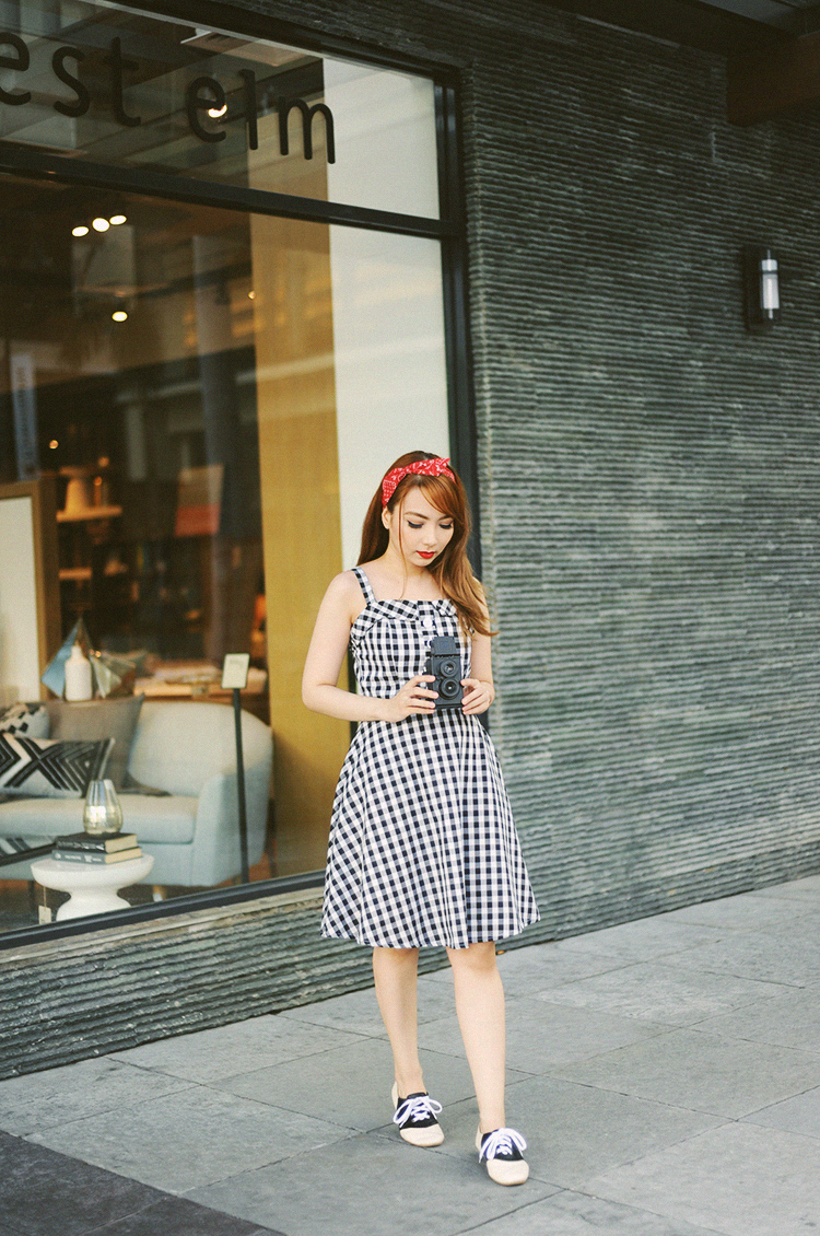case in point: this 50s-inspired gingham number looks even more deliciously retro with the shoe pairing. i couldn’t resist adding a vintage-looking camera for this shoot either; you guys know i can never resist a good prop!
