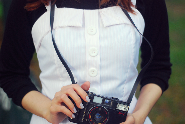 it’s important for me to keep things interesting where dressing up is concerned, partly by going out of my comfort zone on occasion, but also by keeping an open mind to the many ways in which others will undoubtedly interpret clothing pieces. in this case, it’s the Le Caprice maisie dress in white (currently on sale!), which i didn’t even think to use as a jumper/pinafore until fairly recently. it was actually camille’s take on the maisie dress (in pink gingham) that opened up this entirely new styling concept for me, and i couldn’t have been more excited about it. in my mind there were already over a dozen ways to style such a piece, but adding fresh new looks to my little wardrobe arsenal is always welcome and appreciated.
