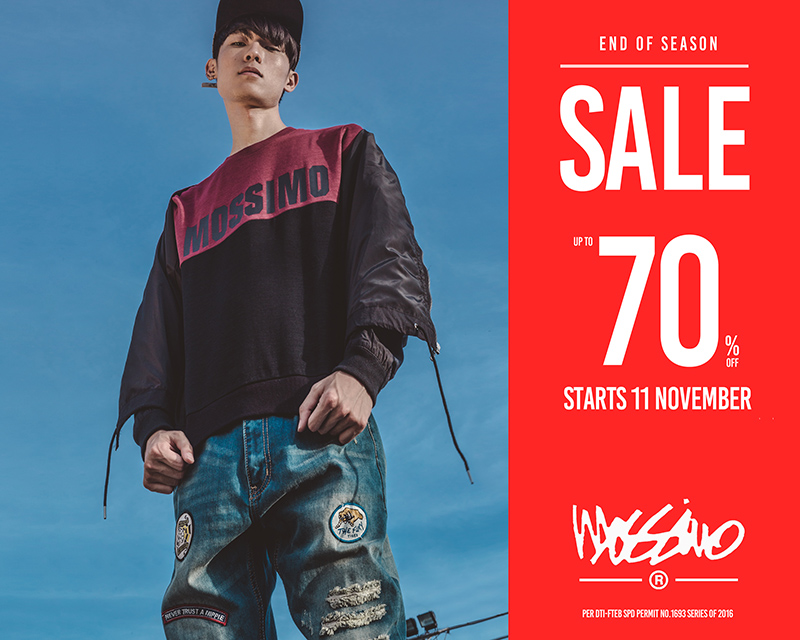 * shop the mossimo SALE at any of their 60 locations, including glorietta 4, SM megamall, SM north EDSA, SM mall of asia, market! market!, festival supermall alabang, SM center aangandaan, SM manila, SM fairview and ayala fairview terraces.