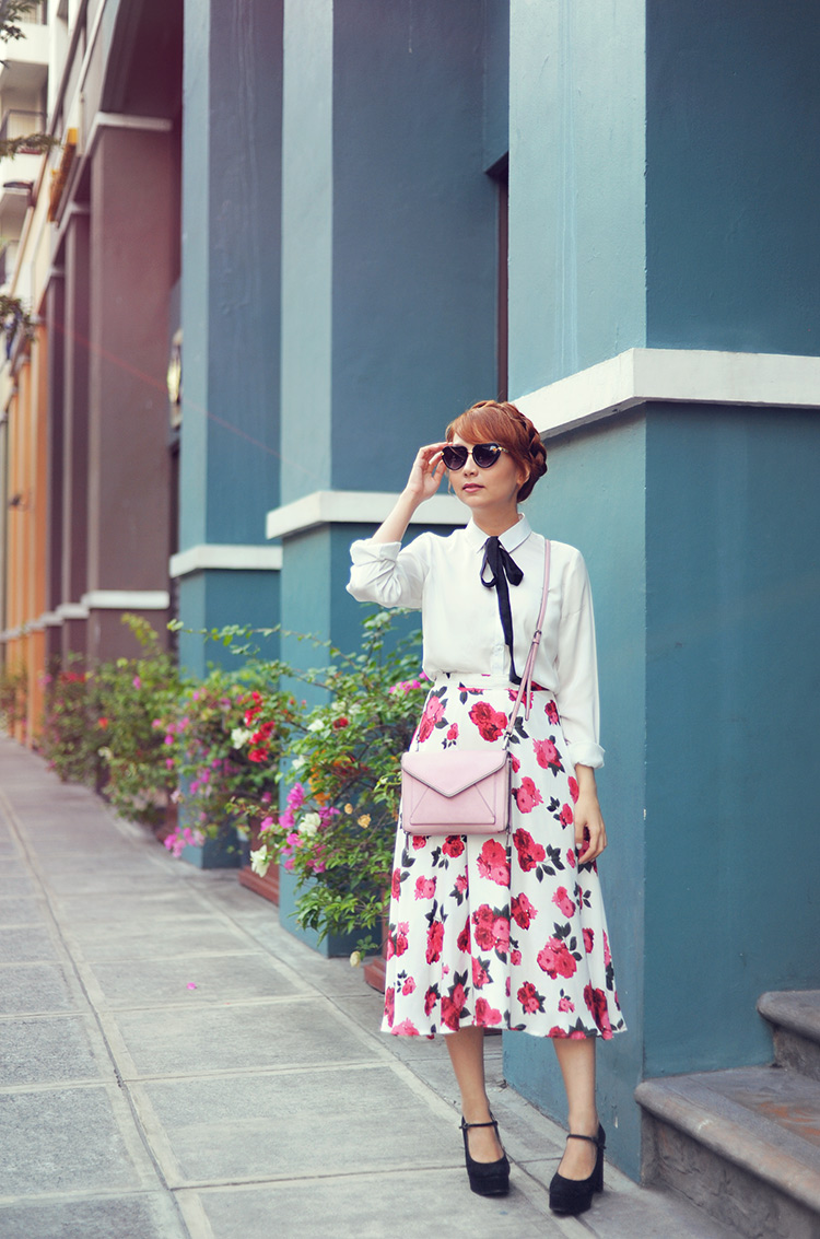 i now have a million backlogs i need to sort through and post, starting with this outfit from a good while ago. this beauty of a skirt always makes me feel like a million bucks and i would, quite literally, wear it every single day if it weren’t at all impractical.