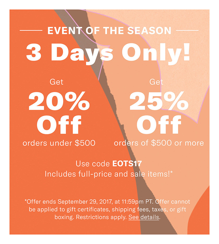 speaking of winning days: shopbop has an ongoing sitewide sale right now, which is the perfect way to get huge discounts on last season’s pieces AND stock up on new fall/winter essentials. just enter EOTS17 at checkout to get your favorites at marked down prices.