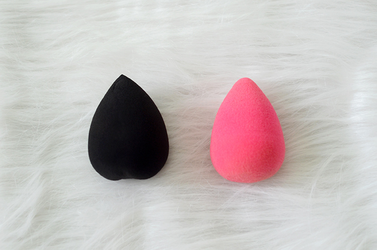 since i’ve been using the largest one (pictured below beside the beauty blender, both wet) for months, it’s a bit dented now. thankfully there aren’t any tears or other imperfections that could hinder a flawless foundation application — yet. once it starts to fall apart, however, i can easily replace it with the medium sized sponge…plus there is also the smallest one which does come in handy from time to time.