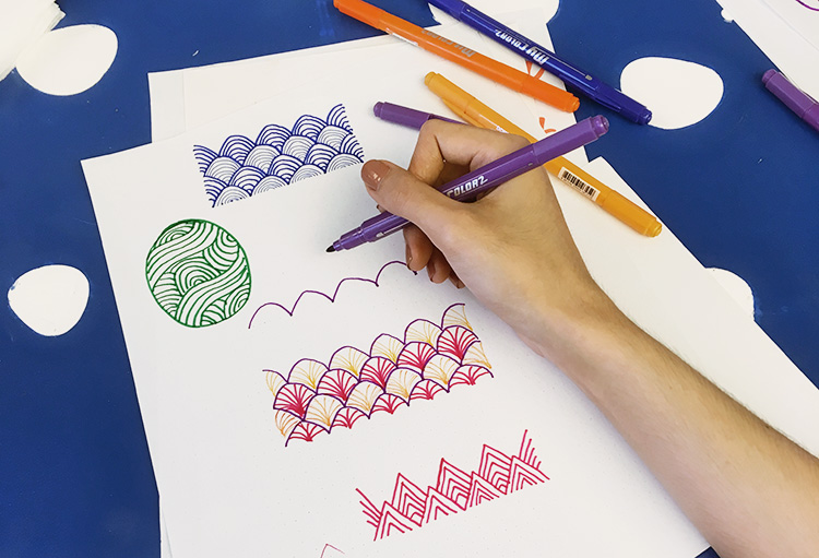an interesting class that took me by surprise was called oriental pattern collage by ian de jesus. it’s basically doodling taken to the next level, by mix-and-matching patterns and shapes, colors and sizes. this is one that i can easily see myself doing in my downtime and i’m excited to see what colorful things i can come up with.