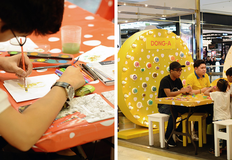 a bunch of colorful booths and work stations have been set up in SM makati, where shoppers can explore and purchase from amazing art brands: Faber Castell, Elmer’s, Sakura, Pilot Pens, Tokyo Finds, Ifex Fine Paper, and Dong-A.