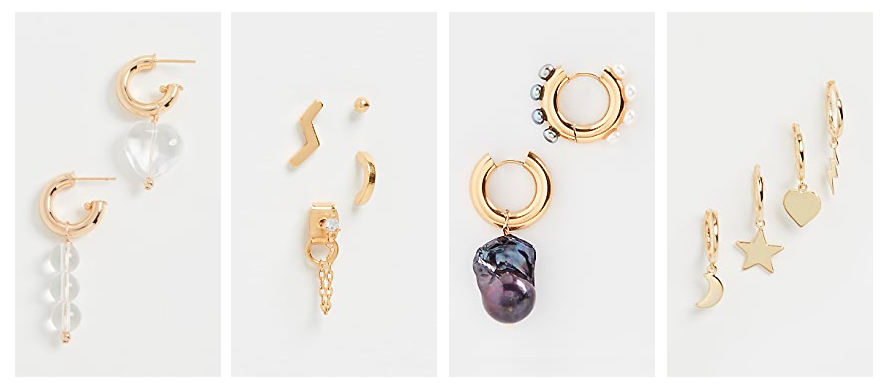 ELIOU quartz earrings | MADEWELL stud earring set | TIMELESS PEARLY mismatched earrings | SHASHI galactic earring set