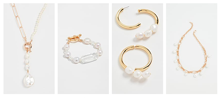 it feels slightly strange to refer to pearl jewelry as a ~current trend~ since they have been mainstays in most women’s armoires since time immemorial. but alas, here we are. pearls are everywhere—from the simple and subdued to the beautifully ostentatious. i particularly love baroque style pieces coming out of jewelry brands these days. plus those super sleek and modern iterations are a delight, too, no? they work so well with a variety of outfits, from intricate dresses to casual women’s pants.