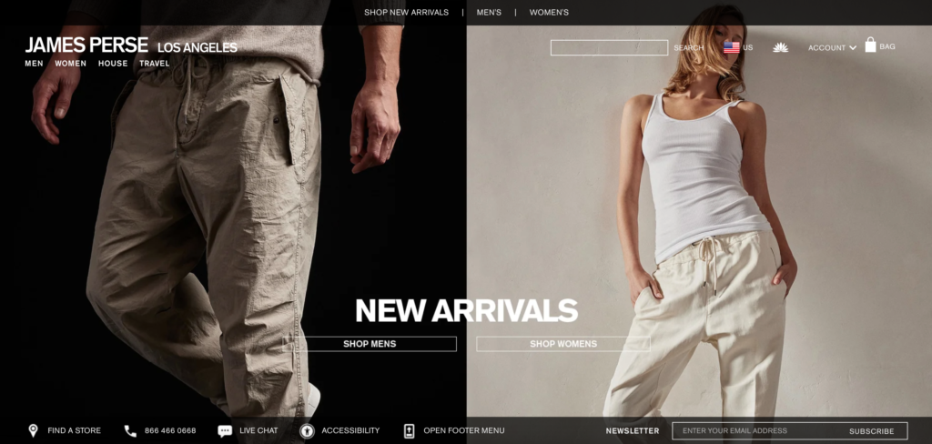 “[James Perse’s] passion for minimalist architecture influenced by warm west-coast indoor outdoor living and the casual clothing that’s inspired by it, ultimately resulted in James’ personal design philosophy and aesthetic – low maintenance high fashion – emphasizing elegance and comfort, pairing sophistication with simplicity. James has applied this visionary approach in every step of defining and developing the brand.” – via jamesperse.com